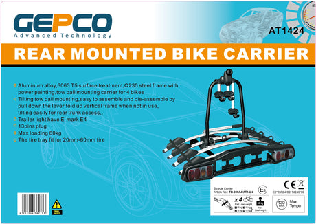 Portabici GEPCO per 4 bici posteriore gancio traino pieghevole 60 kg