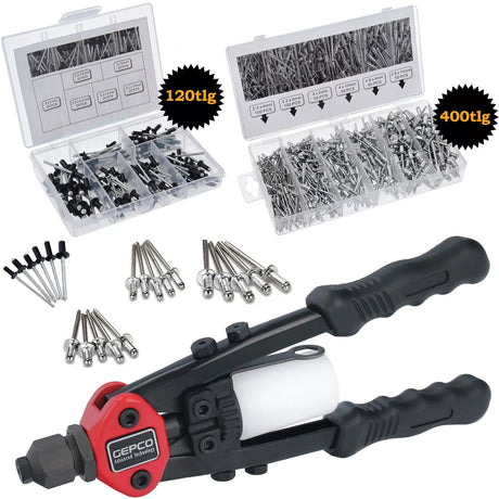 Set di pinze per rivetti ciechi professionali con scatola da 520 pezzi (400+120 rivetti ciechi)