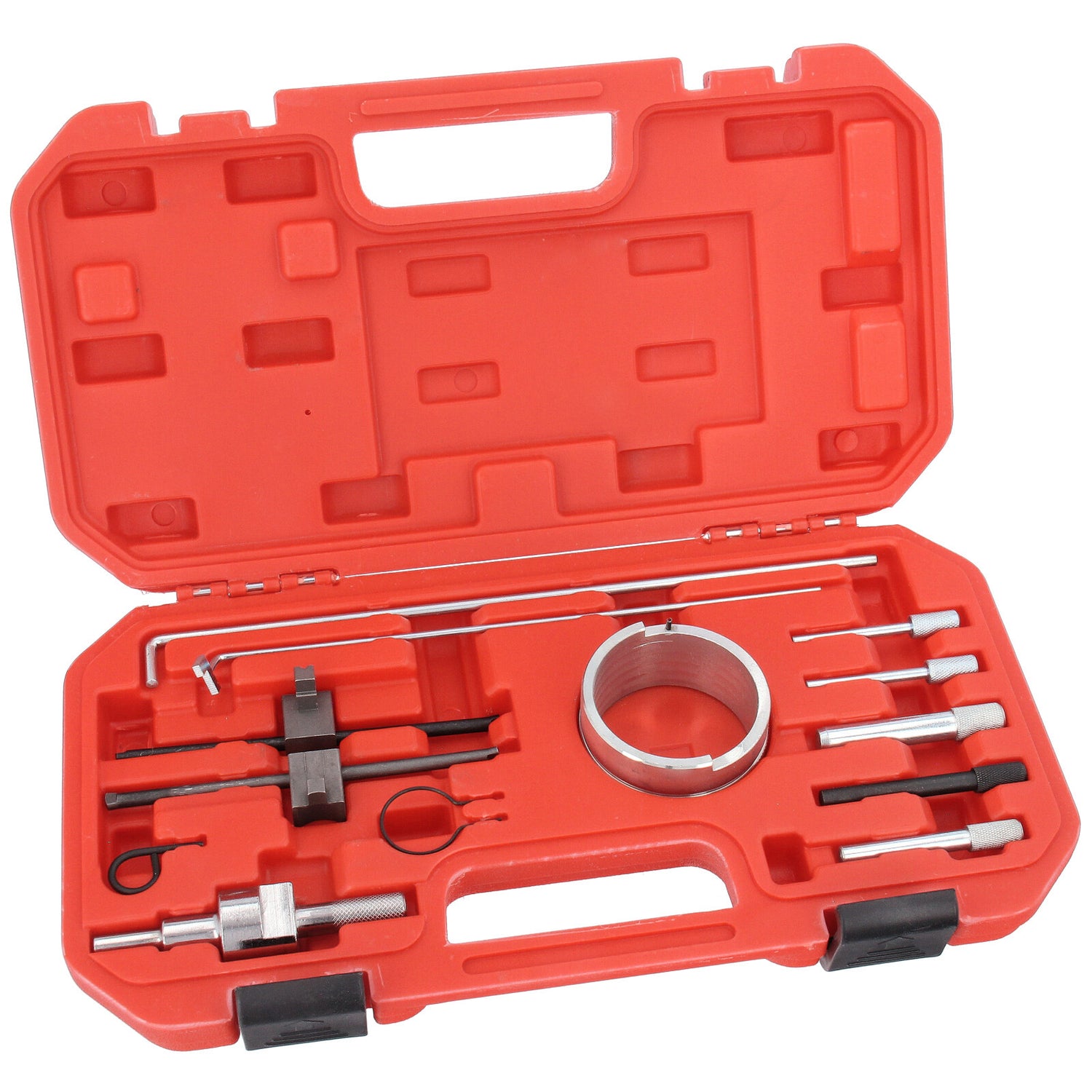 - contiene strumenti importanti per il controllo e la regolazione della fasatura del motore durante la sostituzione delle cinghie di distribuzione e la riparazione dei motori