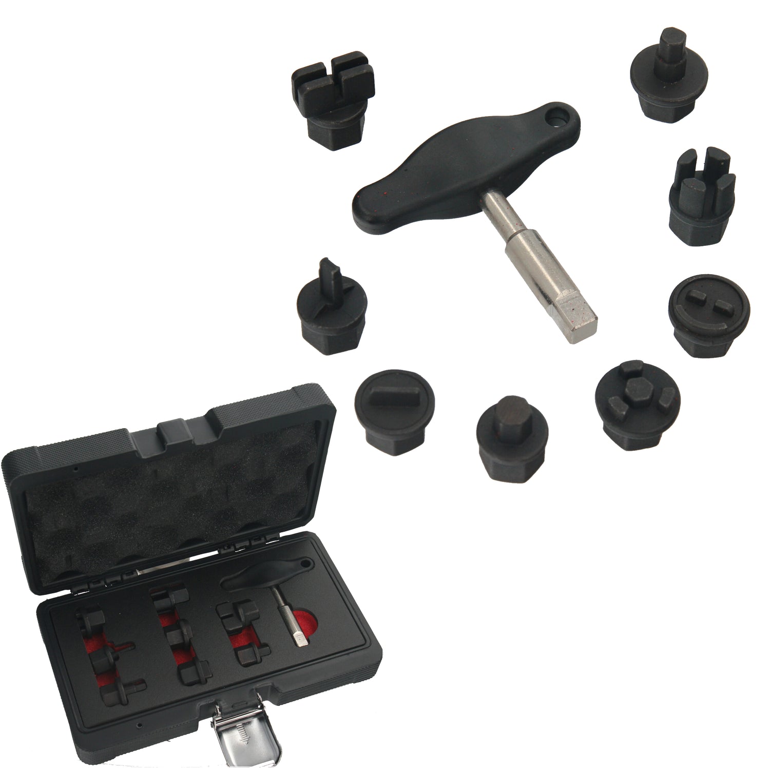 - 8 chiavi a bussola con profilo speciale (compatibili con BMW, DAF, Ford, GM, MAN, Mercedes-Benz, PSA, VAG)
