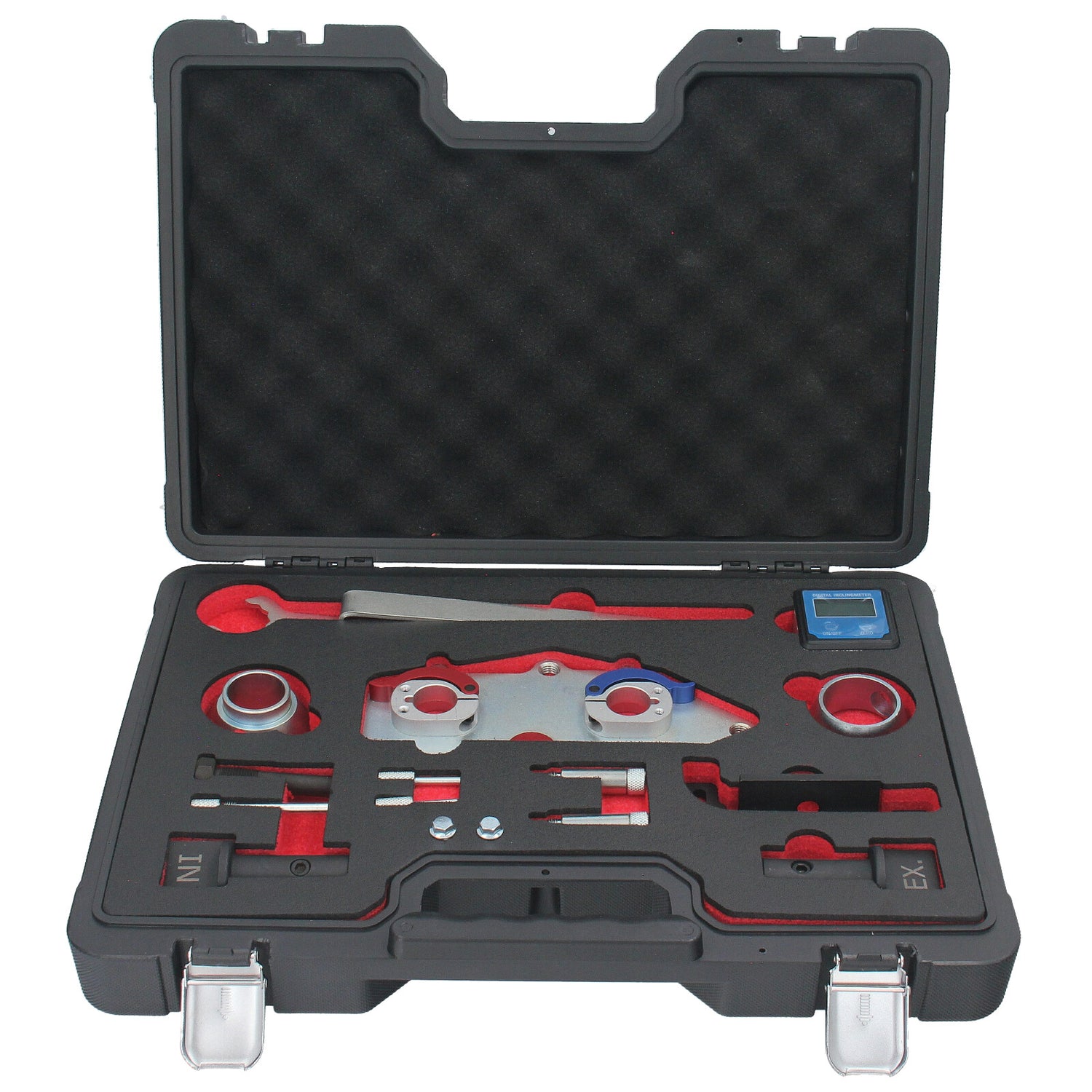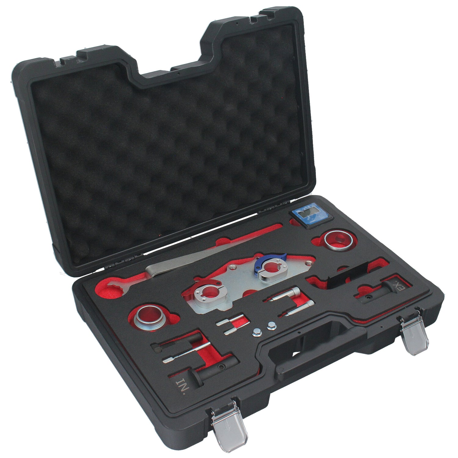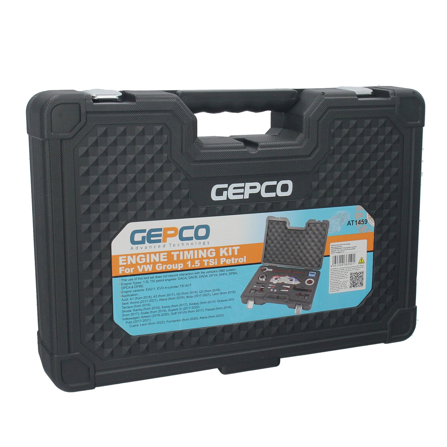 Das GEPCO AT1459 Kit wurde für die präzise Ausrichtung, Einstellung und Überprüfung der Nockenwellensteuerung von 4-Zylinder 1,5 TSI-Benzinmotoren der Volkswagen-Gruppe (EA 211) entwickelt. Dieses Werkzeug ermöglicht eine exakte Justierung ohne den Einsatz computergestützter Diagnosesysteme. Durch die Kombination eines batteriebetriebenen digitalen Neigungsmessers mit präzisionsgefertigten Adaptern wird eine korrekte Positionierung der Nockenwellen garantiert. Bei fachgerechter Anwendung der GEPCO-Verfahren ist kein Eingriff in das OBD-System des Fahrzeugs erforderlich.