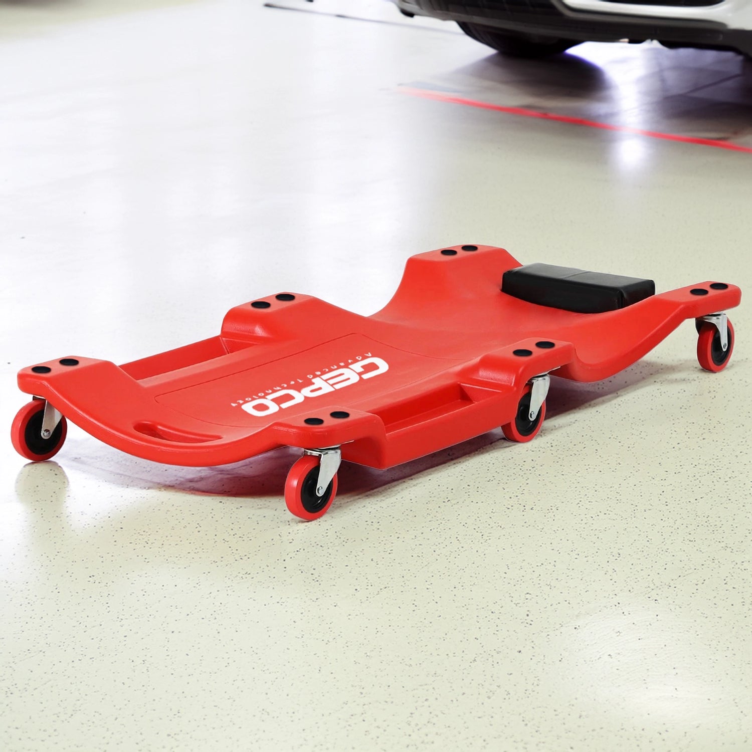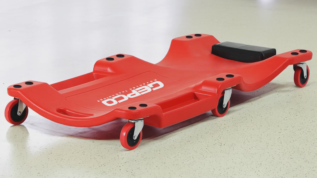 Il carrello da officina è dotato di due ripiani portautensili che si possono utilizzare senza problemi quando si lavora sotto l'auto. È resistente e comodo, e le ruote piroettanti consentono di eseguire facilmente le riparazioni sotto il veicolo. Ideale per meccanici amatoriali e professionisti.