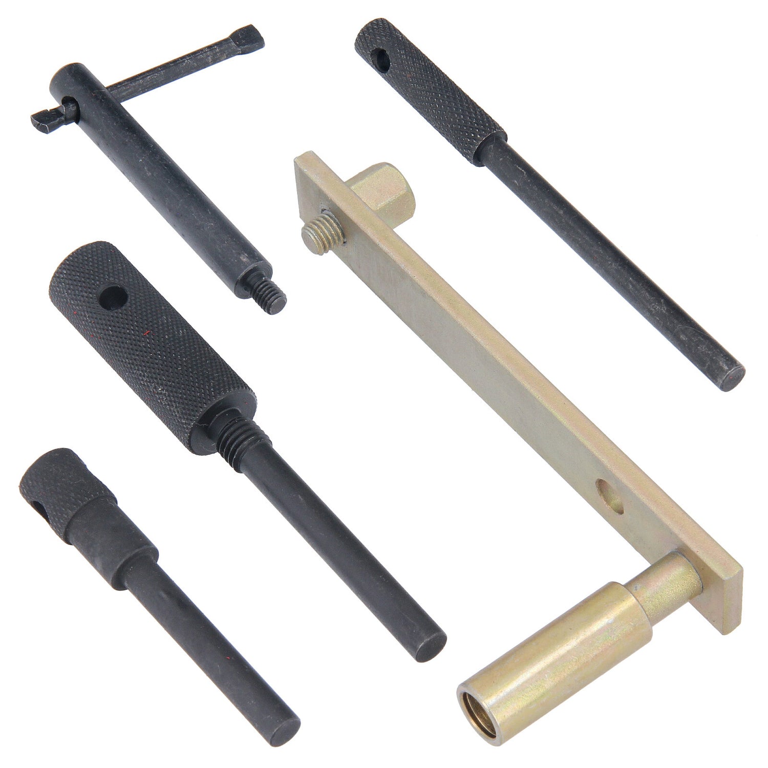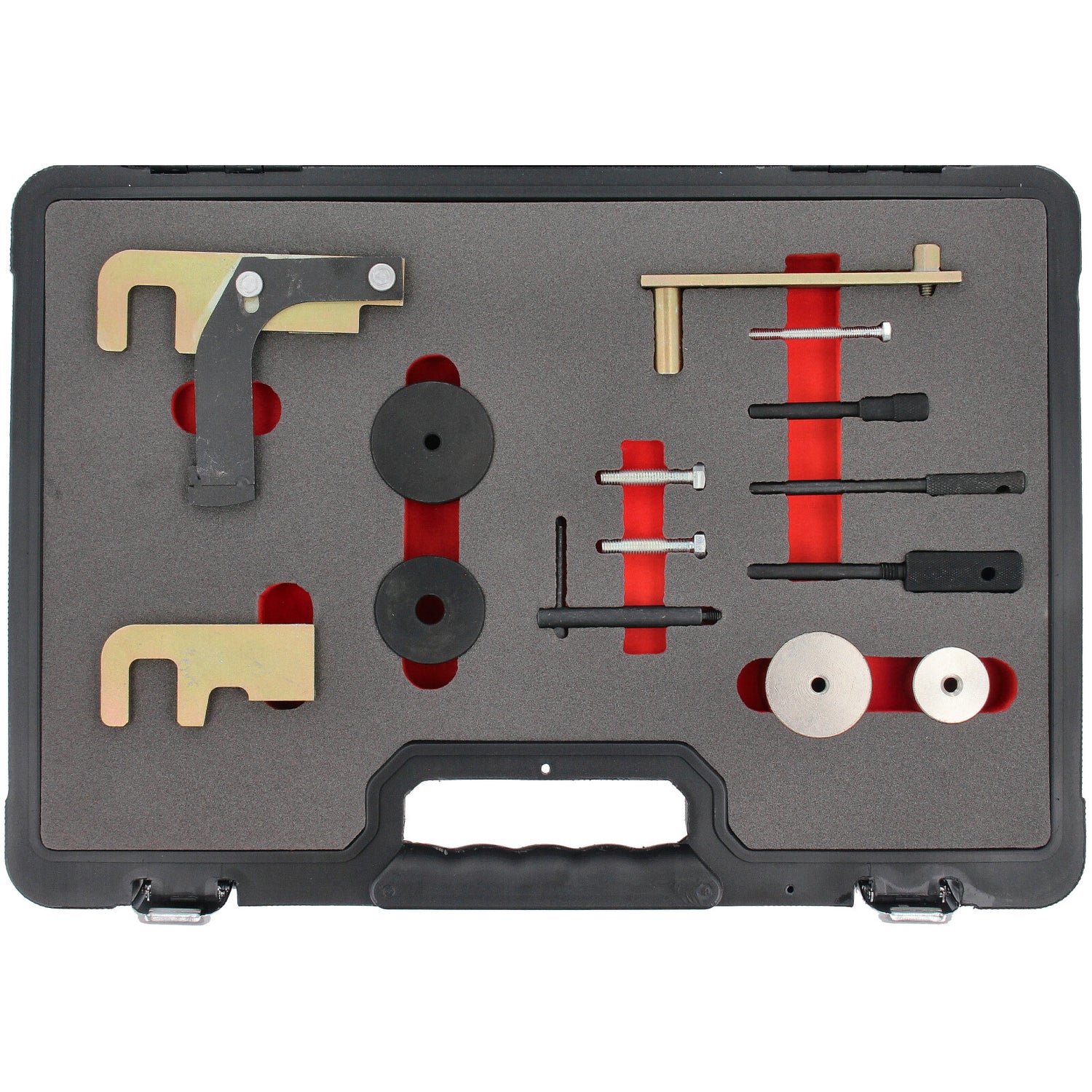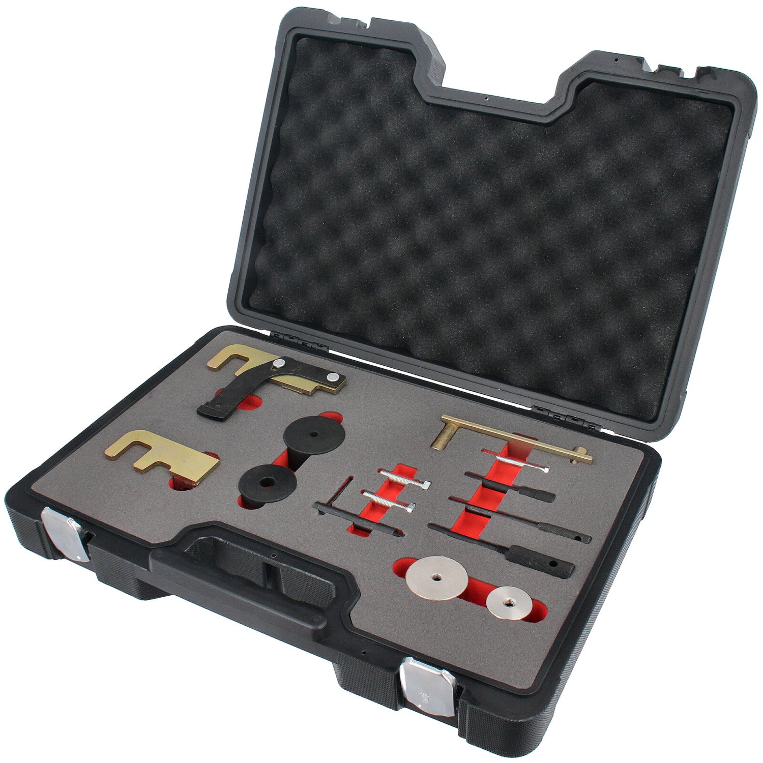 Include strumenti importanti per il posizionamento e il bloccaggio dell'albero motore e dell'albero a camme durante la riparazione della cinghia di distribuzione e del motore.